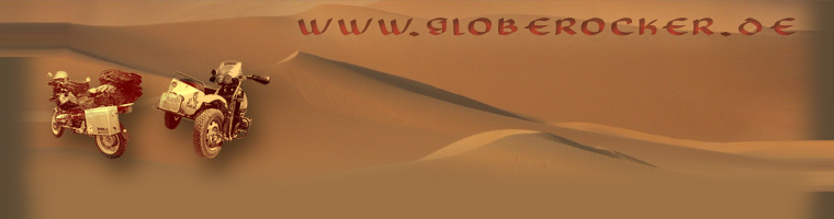 25.03.09: Nach einigen technischen Sorgen, nun ein (kleines) Update. Auch sonst gab es einiges zu tun im letzten Jahr, so das es leider erst heute mal wieder einen Bericht gibt. Dieses Mal ein paar Worte und Bilder von Vaters letztjähriger Alpen-Tour. Wie immer wünschen wir viel Spaß beim Lesen und Schauen! :-) 18.09.08: Nach langer, langer Stille heute mal wieder ein kleines Update. Anfang Juli waren wir aus guter Tradition wieder in Krumbach.Und weil es so geil war, fahren wir nächstes Jahr wieder hin! :-) Das nächste Update (bald!) wird etwas umfangreicher. Ihr dürft also gespannt sein! ;-) 05.04.08: Wir melden uns gesund und munter aus Tunesien zurück. Bis auf meine Suzi haben alle den Urlaub gut überstanden. Sie hat auf der letzten Etappe schlapp gemacht. Jetzt heißt es wieder mal "SCHRAUBEN"... Seit einer Woche hat uns nun der Alltag wieder, das ließ nicht auf sich warten... Wir haben zwei super Wochen verlebt, vieles gesehen, viele neue Leute kennengelernt, jede Menge Spaß gehabt und uns total erholt. Vorab ein paar Fotos, später gibt es einen ausführlichen Bericht mit noch mehr Bildern. So long...! 11.03.08: Die Motorräder sind fertig, das Gepäck verstaut. Nun kann es eigentlich los gehen... Aktuelle Ereignisse in Tunesien und Algerien verunsichern uns allerdings etwas. Trotz allem wollen wir abwarten und schauen was sich eventuell noch ergibt. Hier noch zwei neue Links zum Stöbern... 03.03.08: Und weil wir bald in Urlaub fahr´n, da hab ich mir gedacht, ich stell´ noch was vom ET rein, weil Euch das Freude macht! Die DR´s sind quasi fertig, bis auf Kleinigkeiten bei jedem vom uns ist alles erledigt. Jetzt heißt es noch die Klamotten zu packen und die E-Teile auf die Ladies zu verteilen. Und dann kann es eigentlich schon losgehen... Wir freuen uns schon wie die GROßEN!!! :-) Alles Gute zum heutigen Geburtstag, daragije sestra! ;-) 17.02.08: Nach längerer Abwesenheit heute mal wieder ein kleiner Beitrag. Es war mal wieder schön auf Schloß Augustusburg ;-) Nachdem nun alle Wintertreffen hinter uns liegen, stecken wir schon wieder bis zum Hals in den Vorbereitungen für unser Oster-Highlight. Richtig geraten: Es geht wieder zwei Wochen nach Tunesien! Heuer werden wir von unserem Webmaster Hörmen begleitet. Wir werden mit drei weiß-blauen Suzuki DR650R Dakar unterwegs sein...Wir lassen uns überraschen, wie sich diese "good-old-Ladies" im Sand schlagen werden ;-) Geplant sind viele Offroad-Etappen und urbane Siedlungen wollen wir eigentlich nur zur Versorgung mit Sprit und Proviant aufsuchen. Wir sind schon sehr gespannt... Und nun viel Spaß beim Lesen und Schauen! 14.07.07: Es wurde wieder Zeit, das ist uns klar. Darum hier ein Bericht, wie unser Wochenende beim Touratech-Travel-Event in Niedereschach war. Wie immer, viel Spaß beim lesen! 28.05.07: Feiertag, Schaffenstag. Heute ein paar weitere sonstige Geräte, leider aufgrund Zeitmangels noch nichts weiter. Aber auch das wird bald wieder, wetten? ;-) 16.05.07: Heute kommt ein kleiner Bericht über das Wintertreffen auf Schloß Augustusburg vom Januar und ein kleines aber feines Gerät dazu. Wie immer viel Spaß beim lesen! 12.05.07: Mal wieder ist ein Tag vollbracht, und es wurde viel geschafft! Als weiteren Lesestoff gibt es einen kleinen Bericht von Yves´ Alpentour mit seinem Vater im Jahre 2003. Weiterhin haben wir noch ein paar Links zu lesenswerten Seiten eingestellt. Viel Spaß beim lesen! 10.05.07: Wir möchten uns gern von einem erlebnis- und ereignisreichen Urlaub zurückmelden! Bis auf ein paar Kleinigkeiten hat alles super geklappt. Wir haben wieder sehr nette Leute kennengelernt, viel gesehen, viel erlebt... Natürlich wird es etwas Zeit in Anspruch nehmen unseren Bericht zu verfassen... ;-) Aber wir versuchen wirklich, unsere "Schreibzeiten" zu verkürzen... ;-) Gut Ding will Weile! Von hier aus mal einen schnellen Gruß an die beiden Wolfgänge. Wir hoffen, Ihr seid gut daheim angekommen?! Also, immer mal wieder hier vorbeischauen, es tut sich ab und zu doch etwas! ;-) Wie zum Beispiel unser Link-Ordner! Aber auch hier gilt: es kommt immer wieder etwas Neues dazu... ;-) Eure globerocker! Last Update: 25.03.2009 |