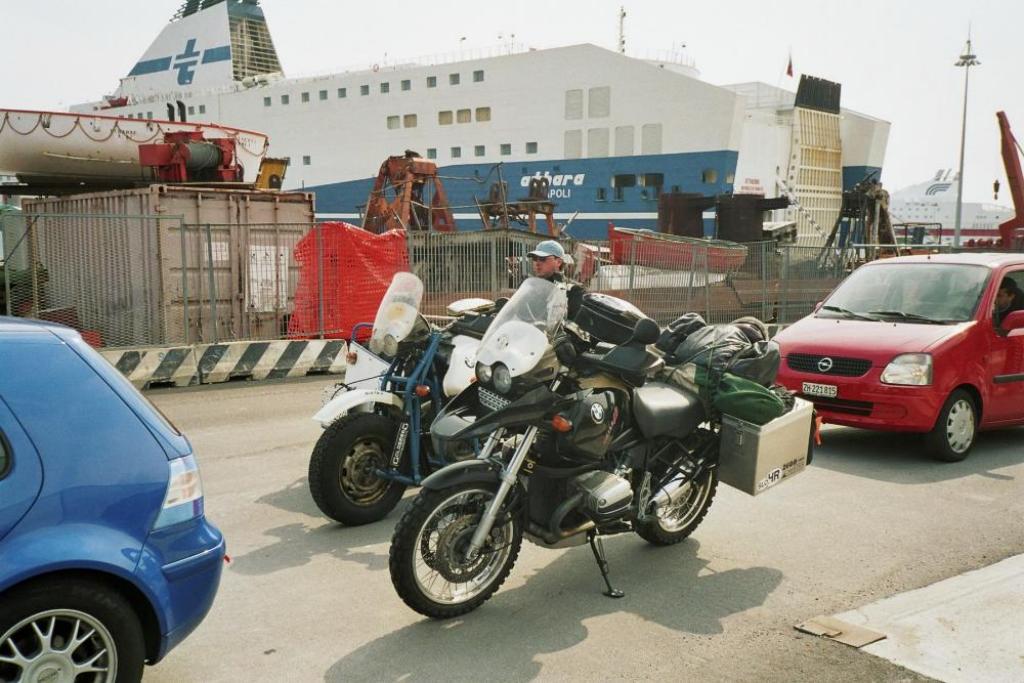 Text: Yves und Matthias, Fotos: Yves Nach unseren letztjährigen Erfahrungen und Erlebnissen war uns eines klar: Ostern 2006 werden wir wieder in Tunesien verbringen! Mit dem Buchen der Fähre hatten wir uns diesmal etwas mehr Zeit gelassen, da wir im Vorjahr mit einem nur zu Hälfte besetzten Schiff der italienischen Grimaldi-Linie gefahren waren. Dieses Jahr wollten wir aber die etwas schnellere und wohl auch komfortablere tunesische CTN-Linie ausprobieren. Und siehe da, diese war Ende Januar schon fast ausgebucht. So haben wir gerade noch eine Doppelkabine ergattert, bei Vierer-Belegung wird es dann doch schon unkomfortabel eng. Also starteten wir am Freitag vor Ostern Richtung Sterzing in Südtirol. Wie im Vorjahr übernachteten wir in der Wohnung eines Bekannten, der es sich dieses Jahr aber nicht nehmen ließ, uns noch in seine Lieblings-Pizzeria zu führen. An dieser und besonders am dort ausgeschenkten Rotwein fanden wir so viel Gefallen, das wir am nächsten Tag verschliefen und dann die ganze Strecke zur Fähre ohne Rauchpause durchfahren mußten, um das Boarding nicht zu verpassen. Während wir im Fährhafen auf die Auffahrt und die üblichen Grenzformalitäten warteten, stellte Matthias lapidar fest, das er das komische Gefühl habe, etwas vergessen zu haben. Aber da das jedem von uns wohl schonmal so gegangen ist, wischen wir die Gedanken beiseite, er wird im entsprechenden Moment schon merken, was es ist (der Moment ließ auch nicht lange auf sich warten, wenige Stunden später in der Fähre war klar, was fehlte).