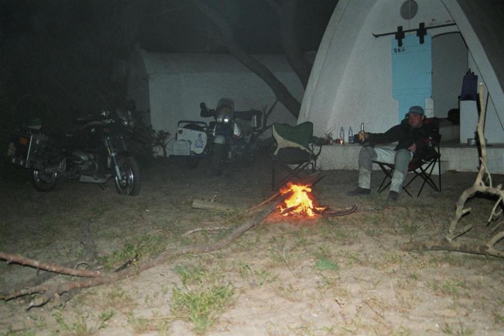 Der Abend brach schneller herein als gedacht. So entschieden wir uns, obwohl nur noch acht Kilometer von der Oase entfernt, die Nacht im Freien zu verbringen. Aber warum auch nicht! Wir hatten reichlich Wasser und sonstige Verpflegung dabei. Und so machten wir uns zu acht einen schönen Abend mit Lagerfeuer und Tütennudeln, mitten in der Wüste.