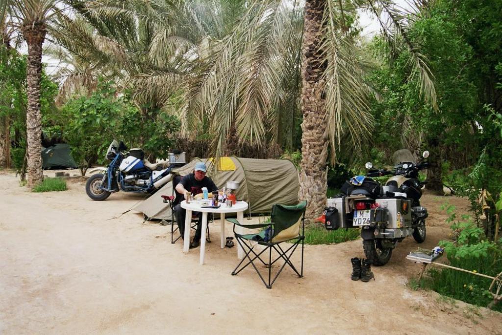 Von irgendwem erfuhren wir, das die Optic2000-Rallye Station an der Oase macht. Na das war doch was für uns! Dieses Spektakel konnten wir uns selbstverständlich nicht entgehen lassen. Vielleicht könnten wir einen Blick auf die ganzen Größen des Rallyesports werfen? Den Abend des Ostersamstages verbrachten wir wieder in geselliger Runde. Die ganzen Urlaubsbekanntschaften hatten es, jeder auf seine Weise, auch bis in die Oase geschafft. So gab es viel zu erzählen und neue Erfahrungen auszutauschen.