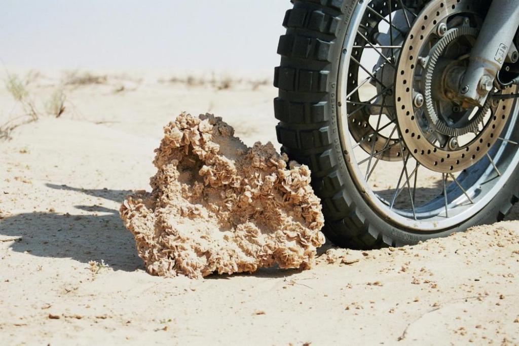Also fahren wir die paar Kilometer Landstraße bis El Faouar und biegen dann ab, mitten in die Wüste, mitten in den Sand. Hier gibt es nur noch diesen mehlartigen Untergrund. Zeit für Yves, seine Fahrkünste weiter zu trainieren. Und siehe da, mit sehr wenig Luftdruck (vorne und hinten ca. 0,9 Bar) und einer beherzten Gashand geht es auf einmal richtig gut. Was für ein geiles Gefühl so durch den Sand zu pflügen!